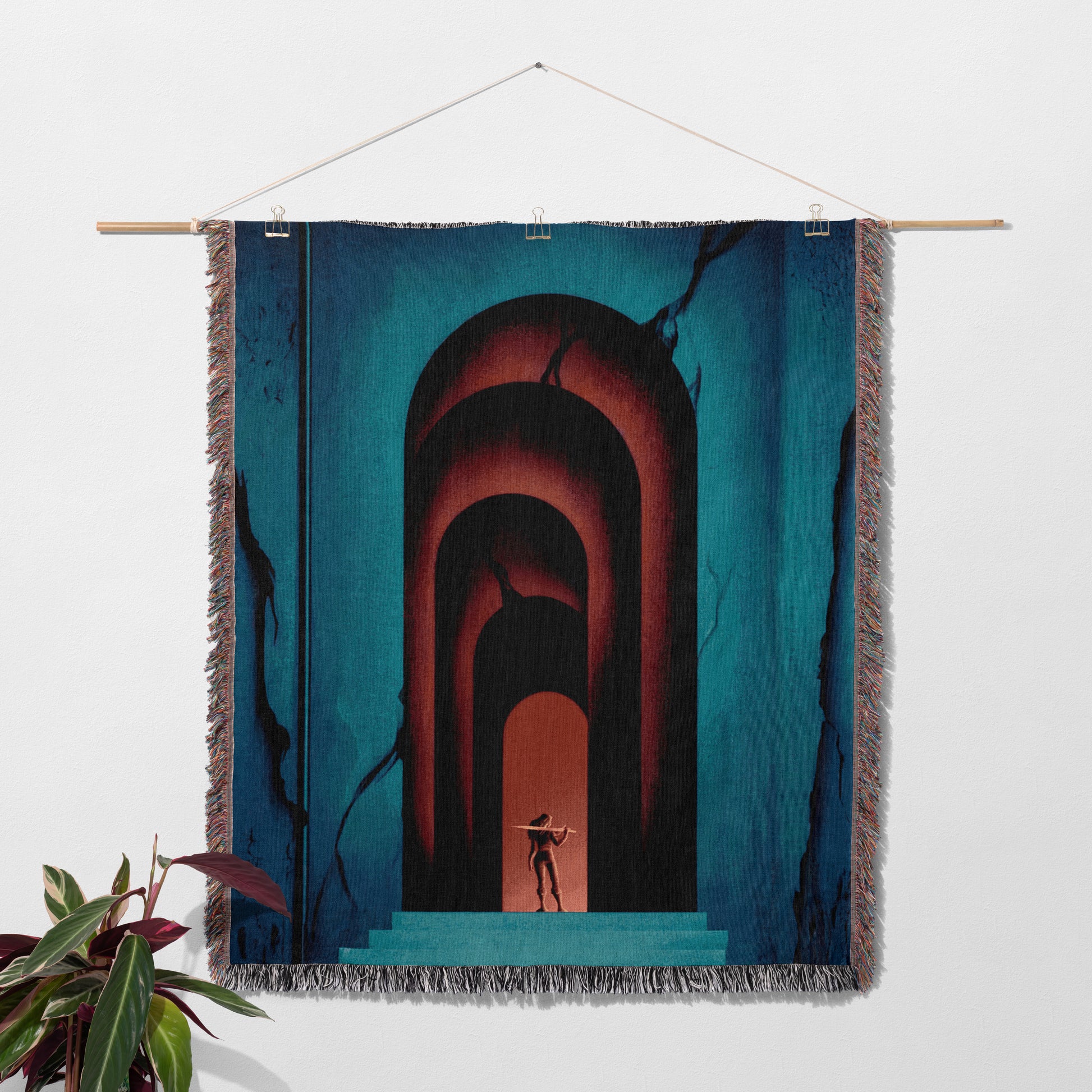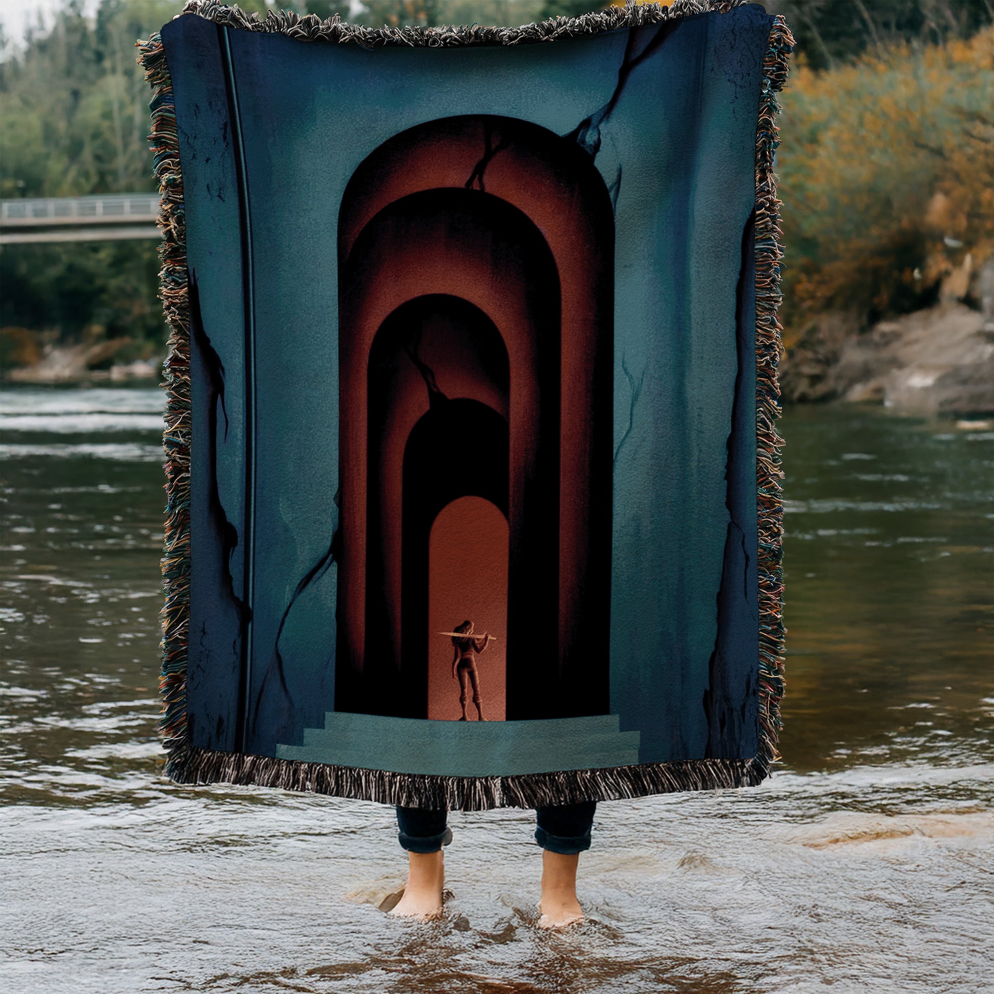 Each blanket is woven when you order, reducing waste and creating a rich, textured pattern with cozy depth. The cotton weave gives the artwork a classic, tapestry-like look that feels timeless and inviting. Finished with fringe edges for that vintage library vibe.