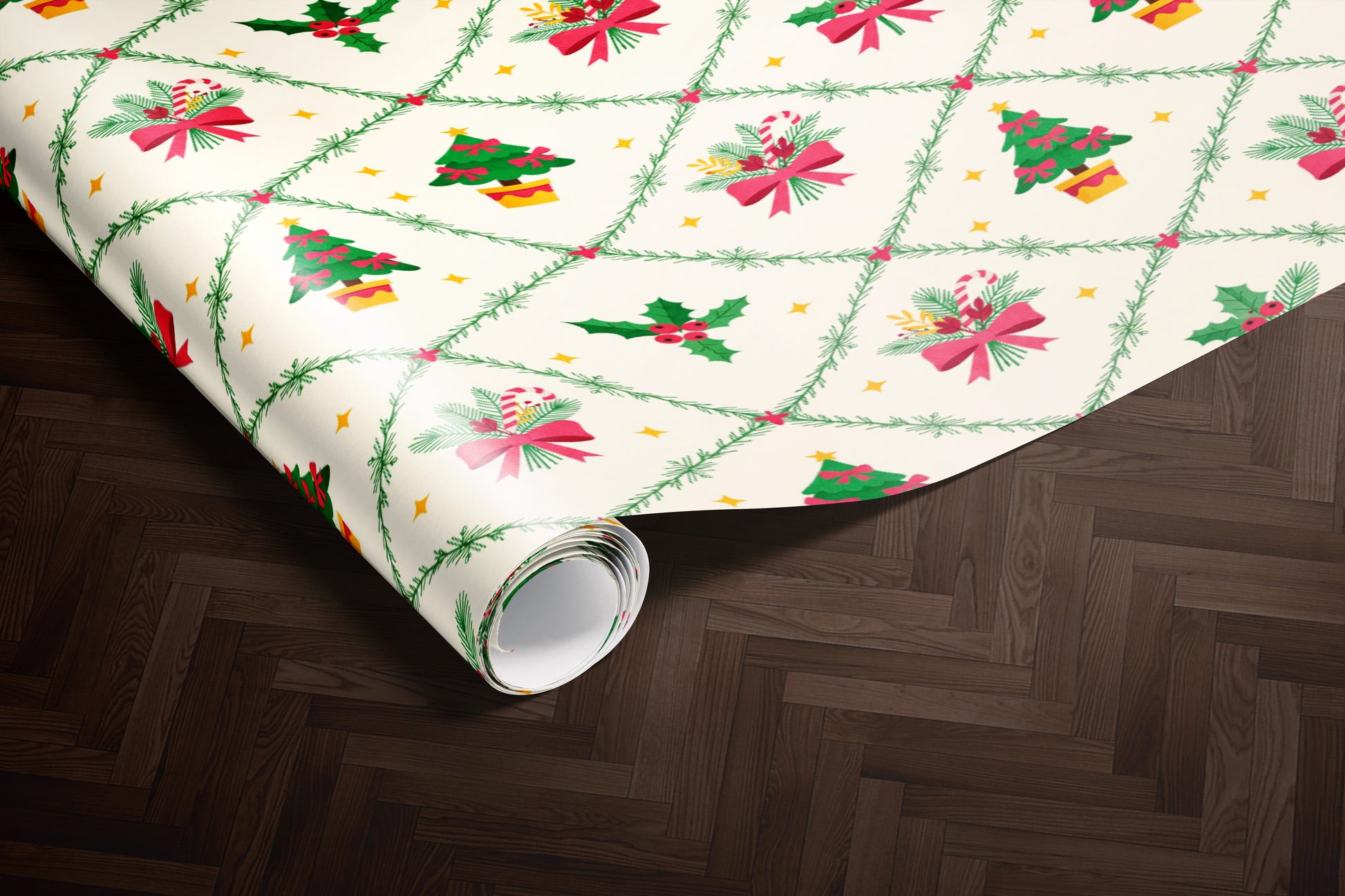 Christmas Wrapping Paper Roll with Trees & Holly