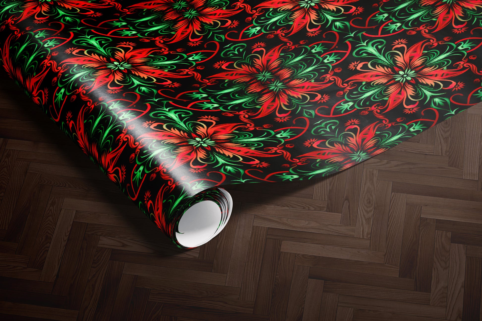 Luxury Red & Green Damask Wrapping Paper