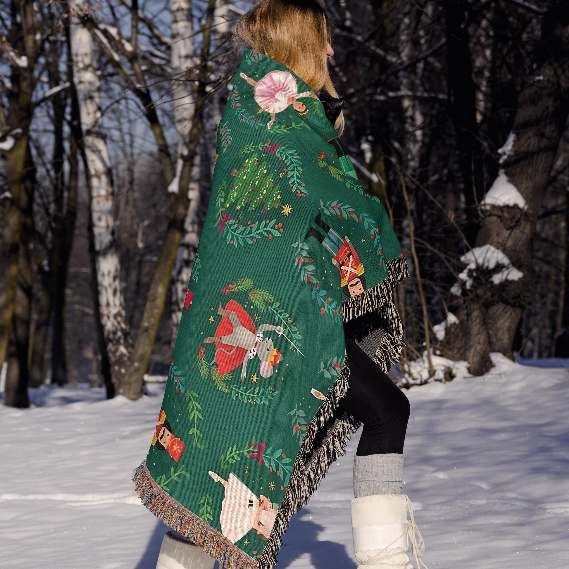 Nutcracker Ballet Christmas Woven Throw Blanket